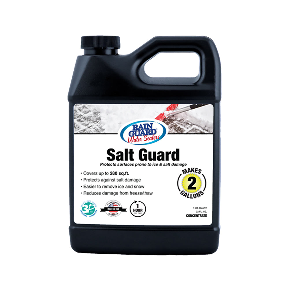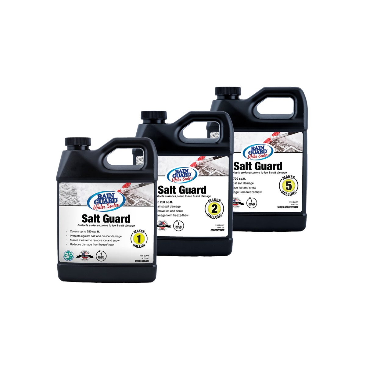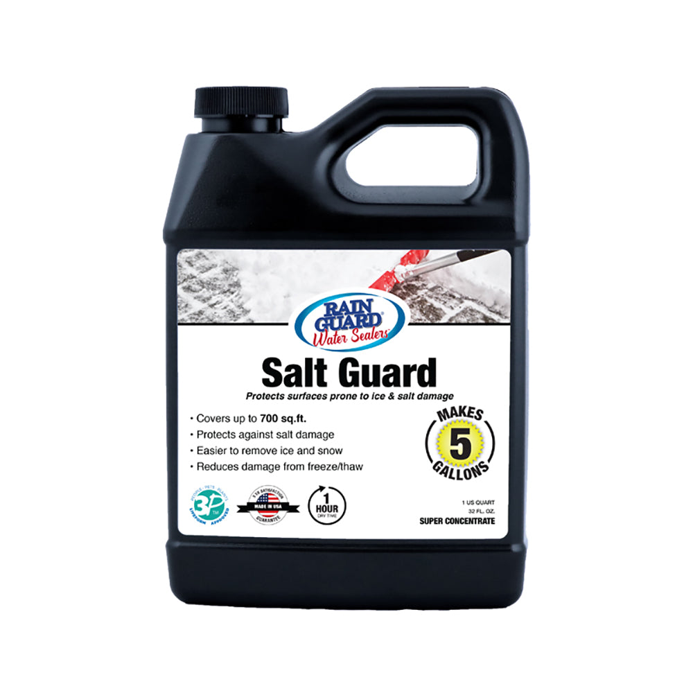 Don’t let road salts, de-icers, or salt spray ruin your home! Protect concrete and masonry surfaces from salt and freeze / thaw damage with Rainguard Water Sealers Salt Guard! Our non-toxic and water-based concrete salt protection formula lasts up to 5 years* and is safe for people, pets, and plants.