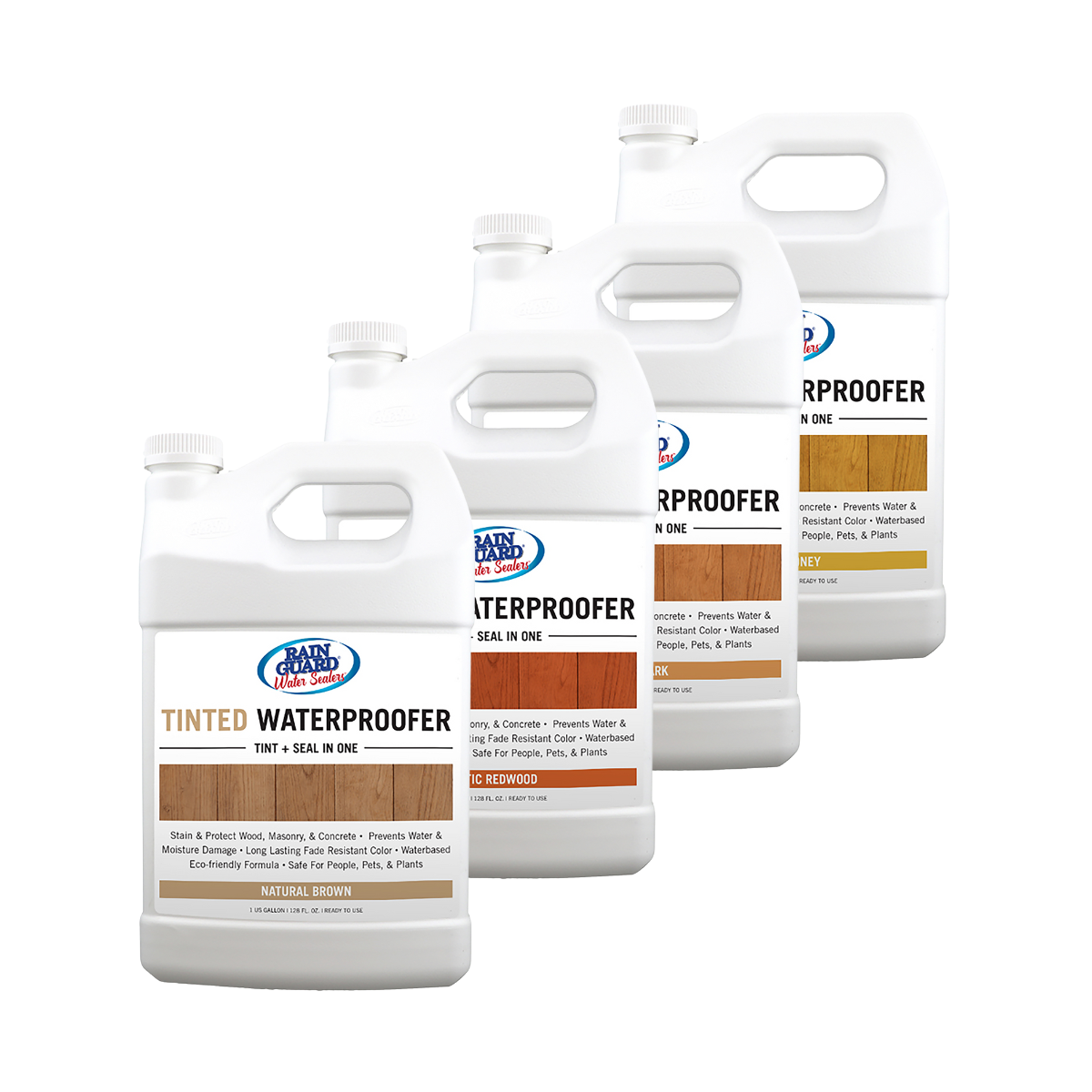 The perfect two-in-one stain and water repellent protection for your home is here! Rainguard Water Sealers Tinted Waterproofer Sealers are non-toxic and water-based with a formula that lasts up to 3 years* and is safe for people, pets, and plants. Our Tinted Waterproofers penetrate the surface to form a semi-transparent protective barrier that resists weather, water, and stains on unpainted and previously unsealed wood, concrete, and masonry surfaces. It helps prevent the growth of mold and mildew, and is safe for indoor or outdoor use with little to no odor and low VOC’s. Unlike traditional waterproof protection stains, our formula will never yellow, crack, or peel over time, even in direct sunlight.