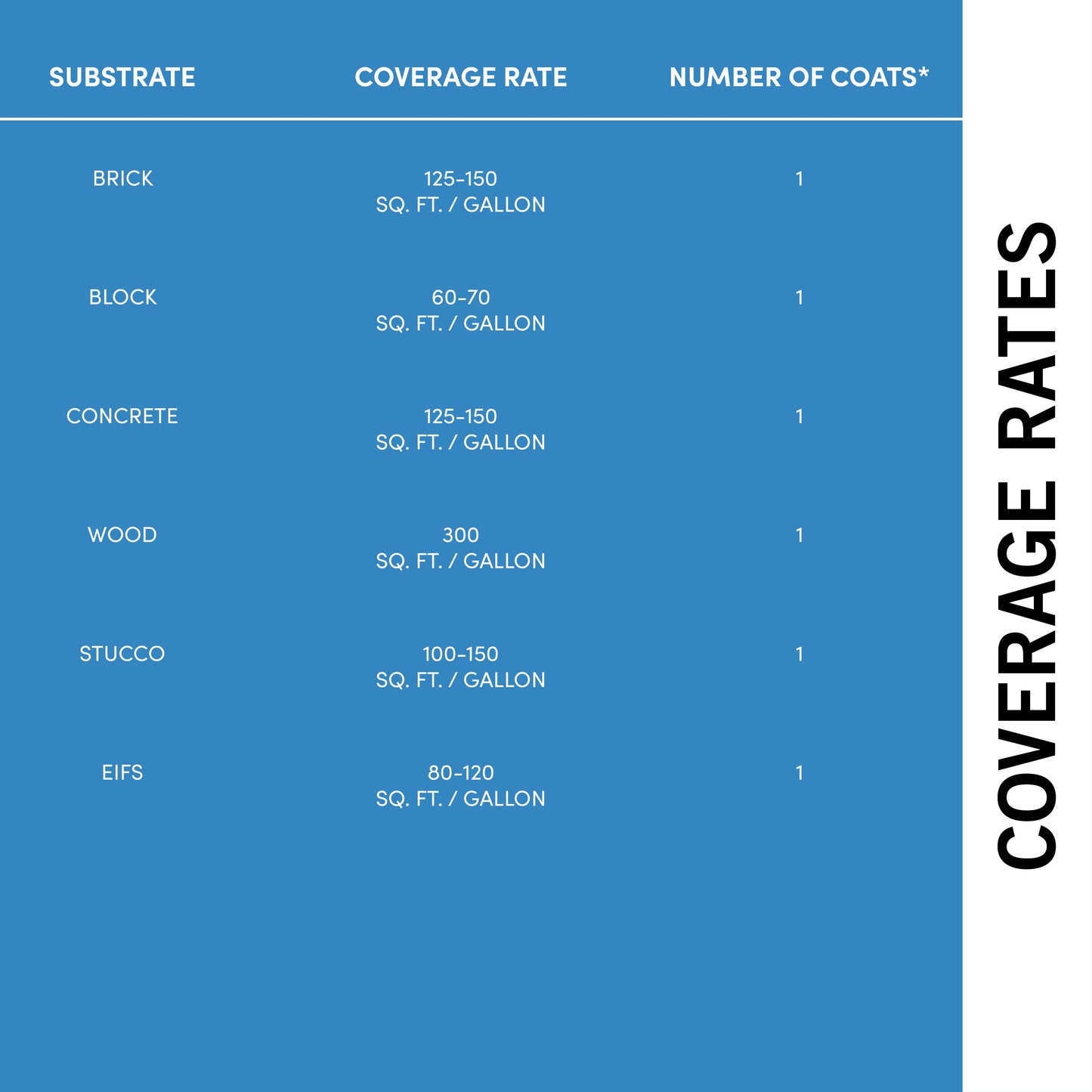 Up to 150 sq. ft. / gallon depending on surface porosity