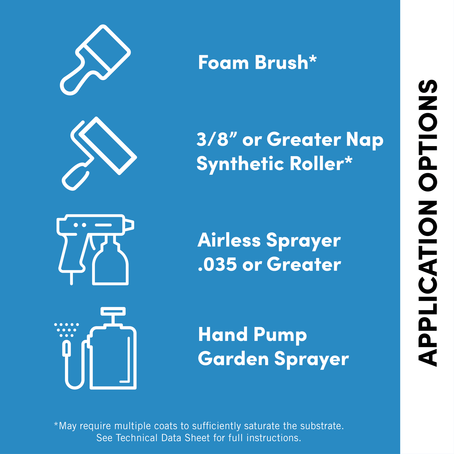 The sealer should be sprayed on in a flood coat with a hand-pump garden sprayer. At least 2 flood coats are needed. Depending on surface porosity, additional coats may be needed.
